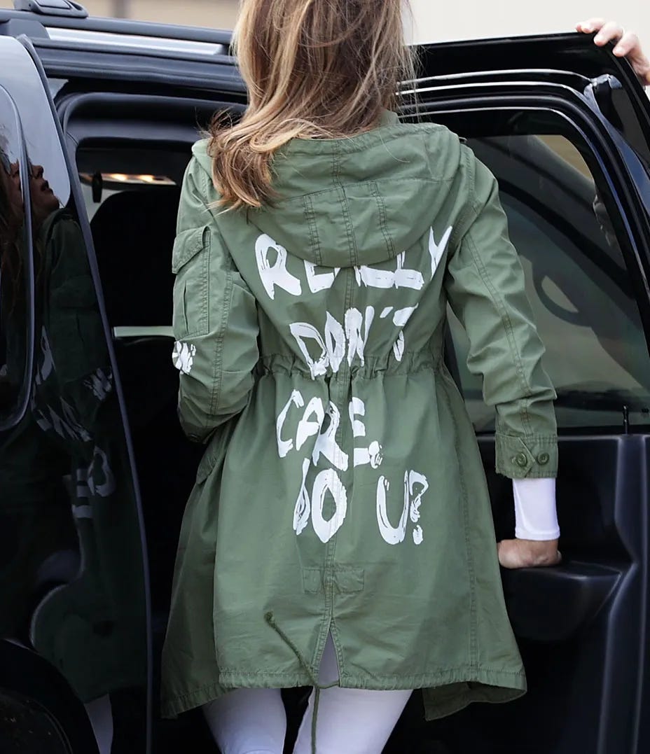 Melania Trump visiting a migrant child detention center in 2018 wearing a Zara jacket with the message “I REALLY DON’T CARE, DO U?” Her reps initially claimed it was “just a jacket” but Melania later clarified that it was aimed at “the left wing media who are criticizing me,” not the children in crisis who’d been separated from their parents. Classic mixup.