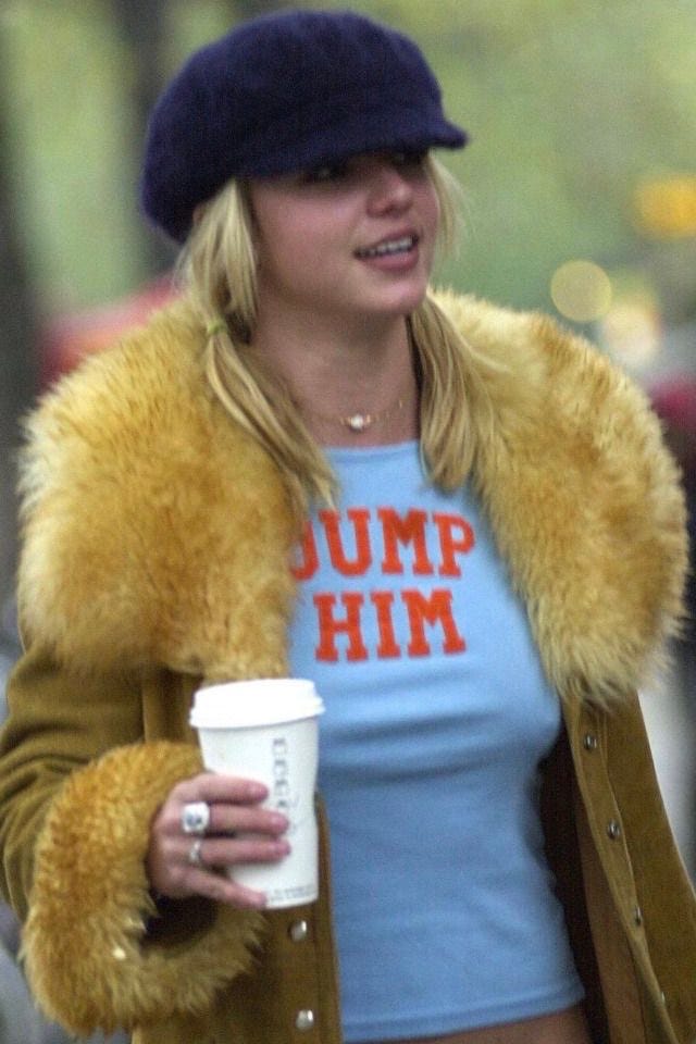 Britney Spears in a Juicy Couture DUMP HIM shirt in 2002, right after her breakup with Justin Timberlake. My loneliness is killing me it.