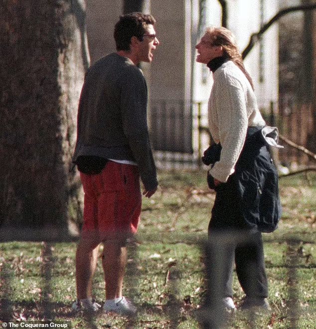In February 1996, seven months before their wedding, paparazzi snapped Carolyn and John having a blowout fight in Battery Park—a grimly on-the-nose location, since the argument got physical. John pulls Carolyn’s arm, Carolyn jumps on John’s back. John appears to smack Carolyn and pull her ring from her finger. It's urgent, visceral, and difficult to watch. How could they—one of the most famous and famously private couples in the world—take off their gloves so blatantly in public?