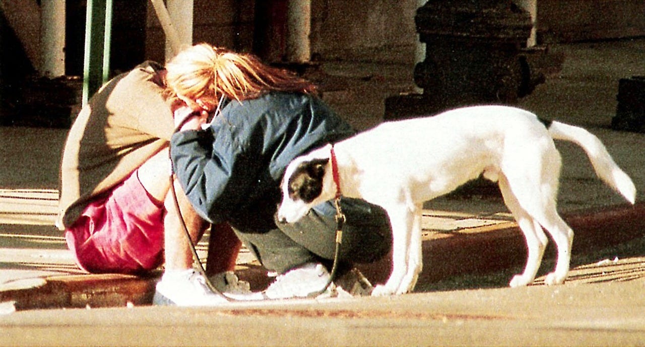 We may never know the truth, but the photographic evidence is available for interpretation. I’ve written about how pictures inspire my creative process, and gossip can be an act of creation as much as transmission. While I won’t put forth any theory on what happened during their fight, a light went off for me at their dimmed, resigned expressions on a bench once the brawl had cooled. The shocked and tired eyes, the tender hug they shared on a curb with their dog. I recognized this raw place and found it more interesting than the rage that preceded it.